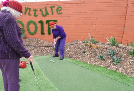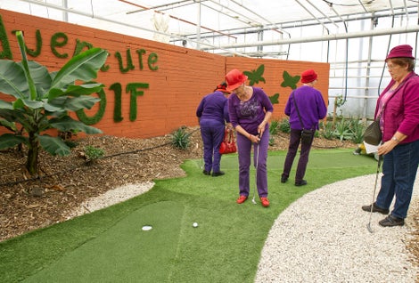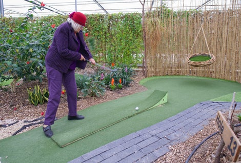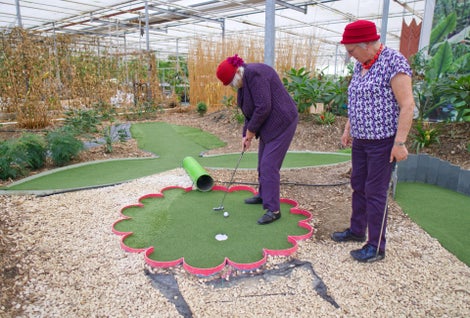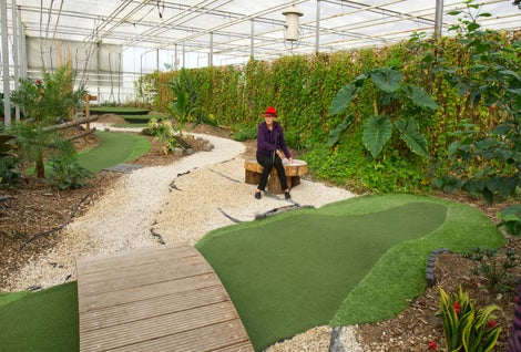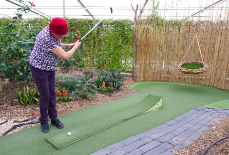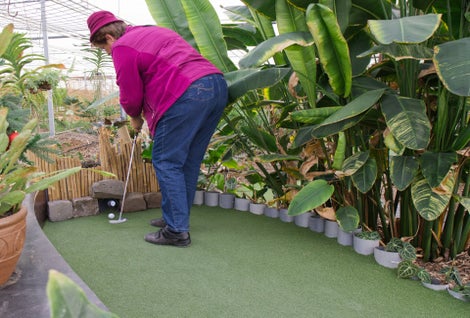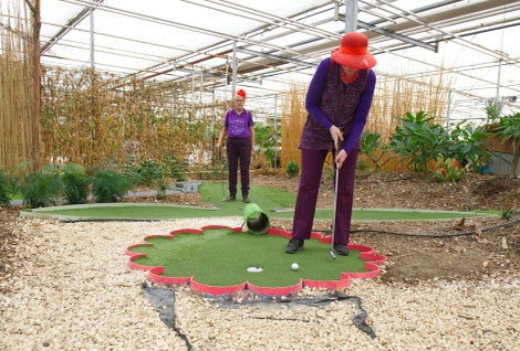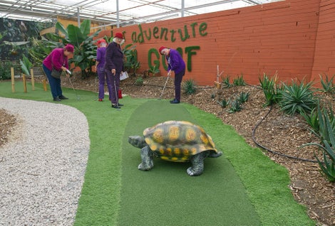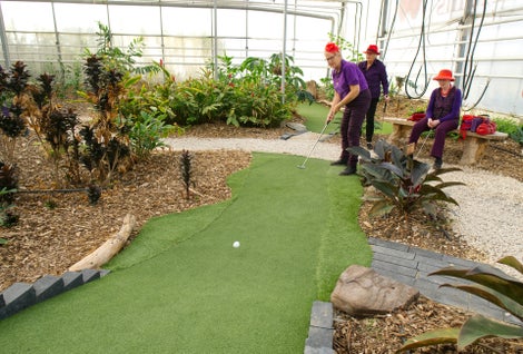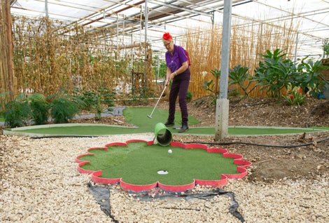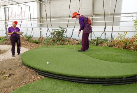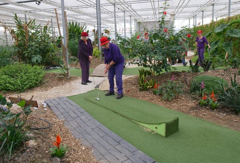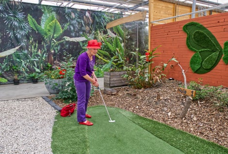 Daarna mocht je weer terug de kas inlopen, maar we moesten ook nog aan het werk op de warme minigolfbaan. Daar kwamen we ook nog losliggend vlinders tegen. Daarna nog een gezellige babbel en een drankje als afsluiting en laat weer op huis aan.