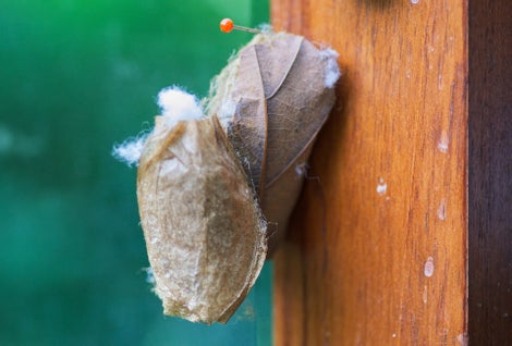 Ook hingen er nog poppen, die aan het uitkomen waren. Langzaam werden de vleugeltjes opgeblazen en droogden ze. Helaas duurde het te lang om ze ook uit te zien vliegen.