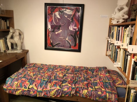 Wij werden in het museum met koffie en koek ontvangen en konden vrij rondlopen om alle uitgestalde werken te bekijken.